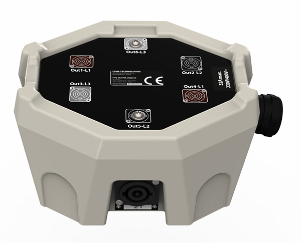 Le SPLITTER permet d'alimenter jusqu'à 6 coffrets de la gamme ACCESS via une seule alimentation 32A triphasée ou jusqu’à 8 coffrets lorsqu’il est couplé à une QUADRUPLETTE.