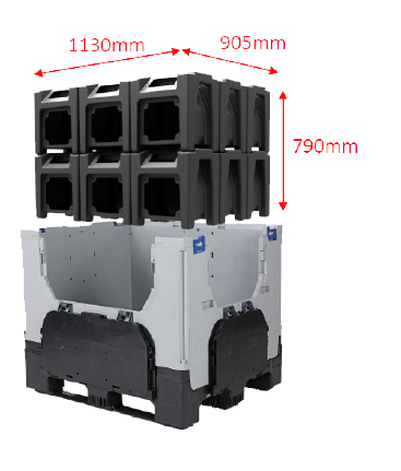 Le format des coffrets 20kW (L 37,5 cm x H 40 cm x P 30 cm) permet de loger 18 coffrets dans une palette pliable standard.
